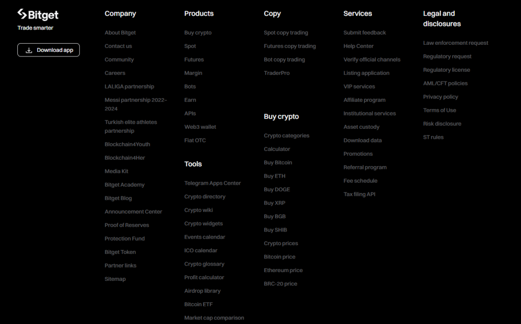 Bitget offers a variety of products such as spot trading, futures trading, copy trading, Earn, and Launchpool.